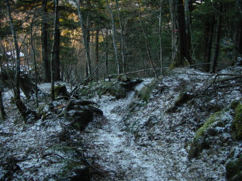 25日に雪が2pくらい、27日に2pくらい降りました 現在山荘前で1pくらいです この雪はすぐ融けると思いますが 日影や北側斜面、吹き溜まり等に少し残るかもしれません まだアイゼンは使わないと思いますが気を付けて下さい 念の為アイゼンをお持ちください |
